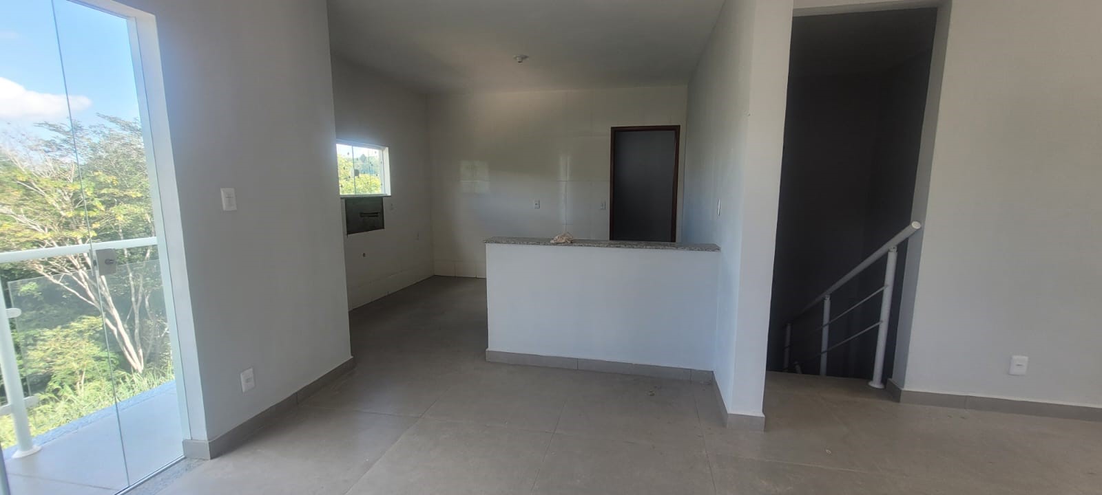 Casa com dois pavimentos, no priemro pavimento, uma sala, cozinha americana com sacada, banheiro social, no segundo pavimento dois quartos, sendo uma suíte e uma sala de estar, naexo uma garagem. Aceitamos financiamento bancário.